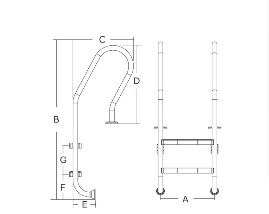 1.0/1.2mm thickness tube Swimming Pool Floor Ladder Step Replacement 304 Stainless Steel Ladders With 2,3,4,5 Steps For Swimming Pool