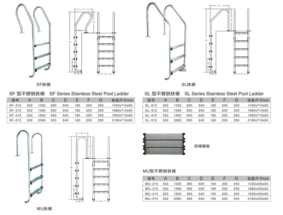 GW:9KGSSurface stainless steel 304# Surface stainless steel 316# Surface stainless steel 304# Surface stainless steel 316# Surface stainless steel 304# Surface stainless steel 316# Surface stainless steel 304# Surface stainless steel 316# Surface stainless steel 304# Surface stainless steel 316# - SWIMMING POOL LADDERS CHARACTERISTICS:
