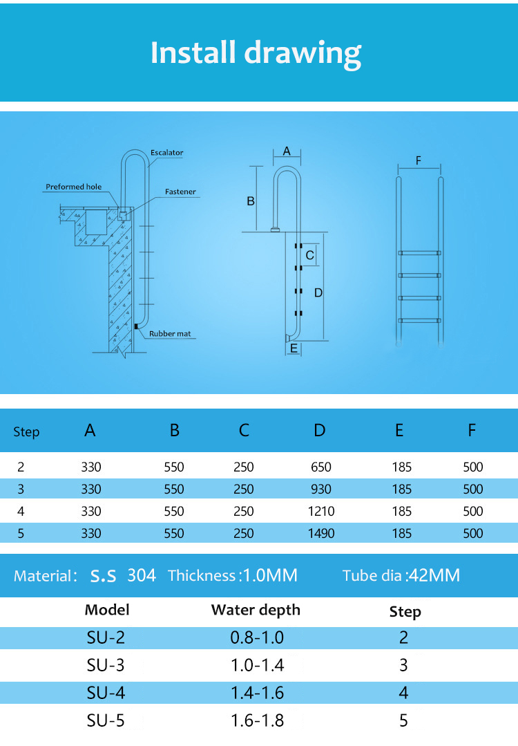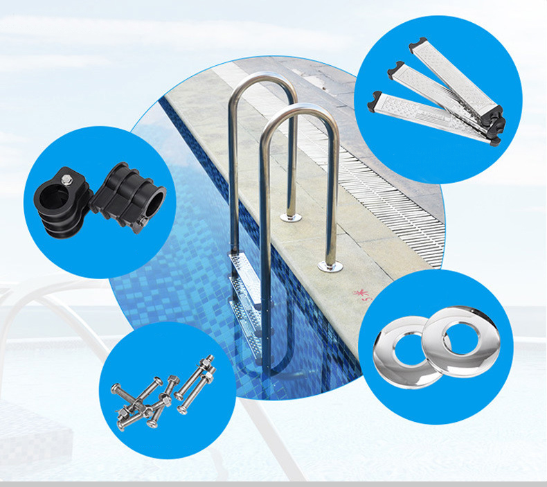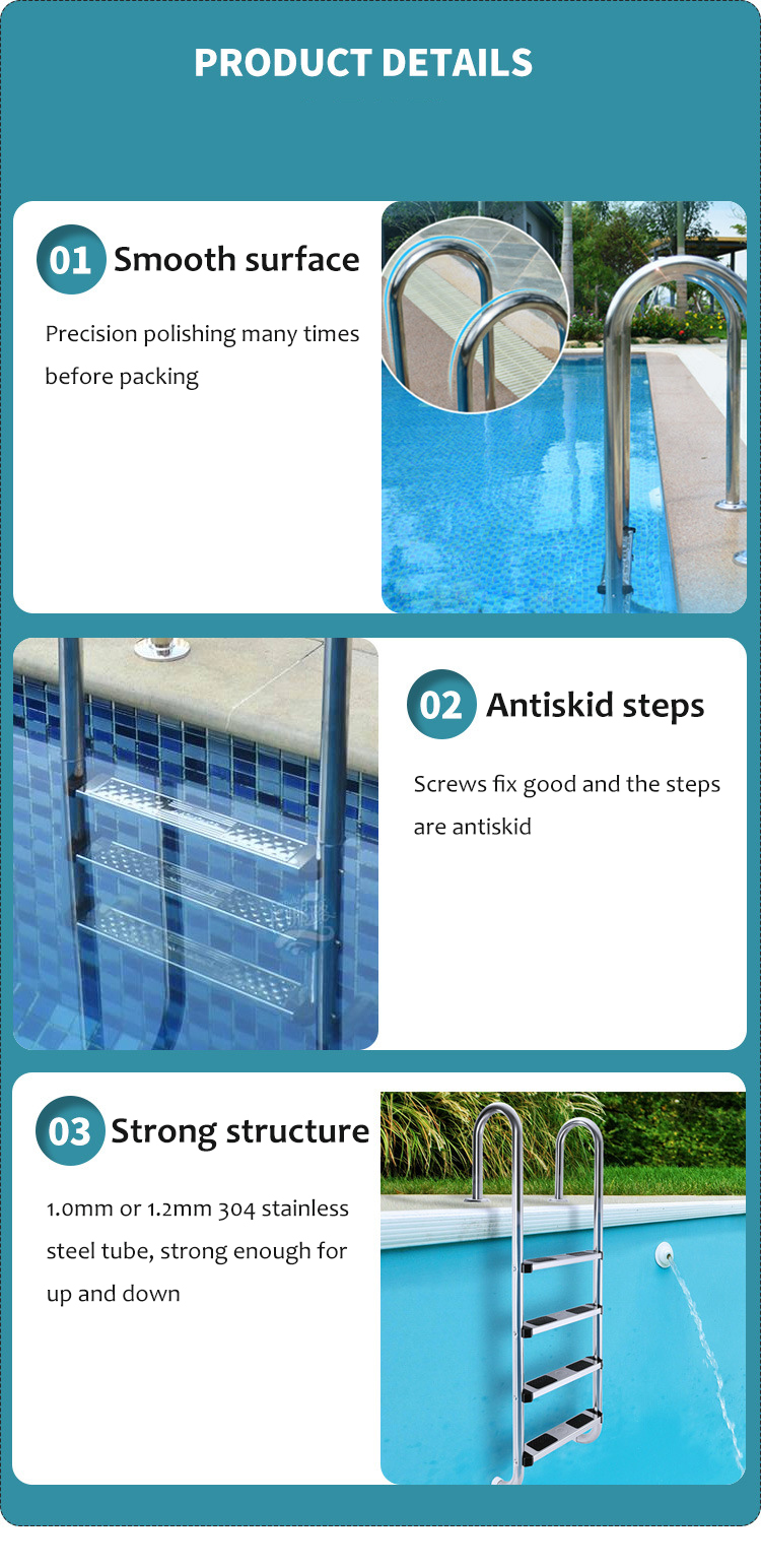1.0/1.2mm thickness tube Swimming Pool Floor Ladder Step Replacement 304 Stainless Steel Ladders With 3 Steps For Swimming Pool