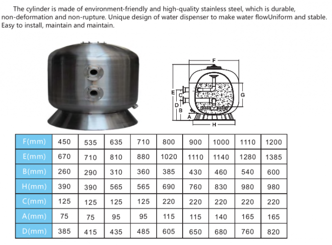 | Product Description Of SMT-A450 Stainless Steel Swimming Pool Side Mount Sand Filter | |