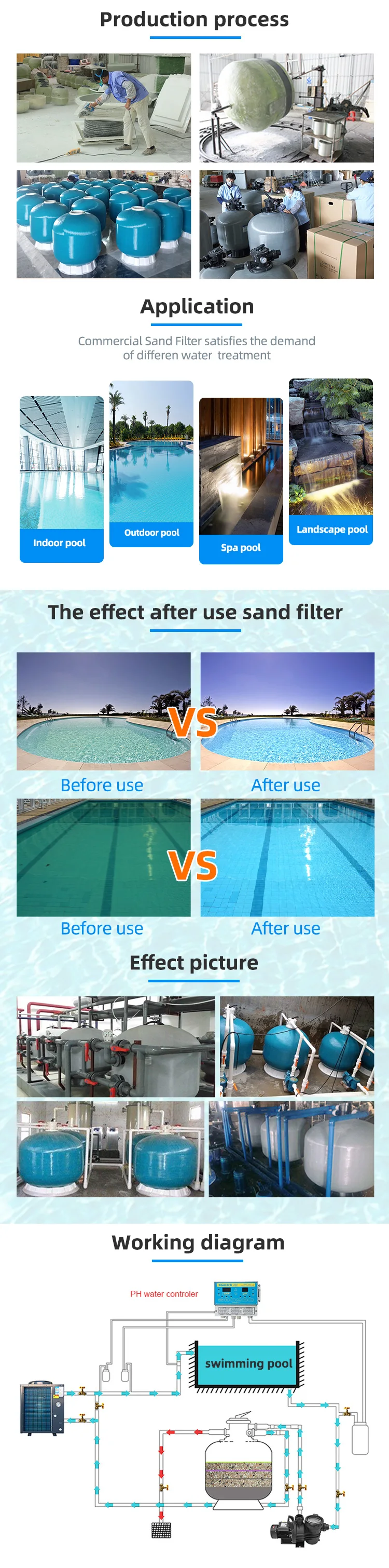 PIKES swimming pool filter as a water treatment device is a very good sale. The swimming pool sand filter is made of fiberglass, which is of high quality. It can be used for a long time under sunlight. Quartz sand filter is one of the most popular pool filters. Our factory has the top mount, side mount, and commercial sand filter. Will you want it? Contact me, please.