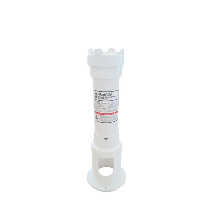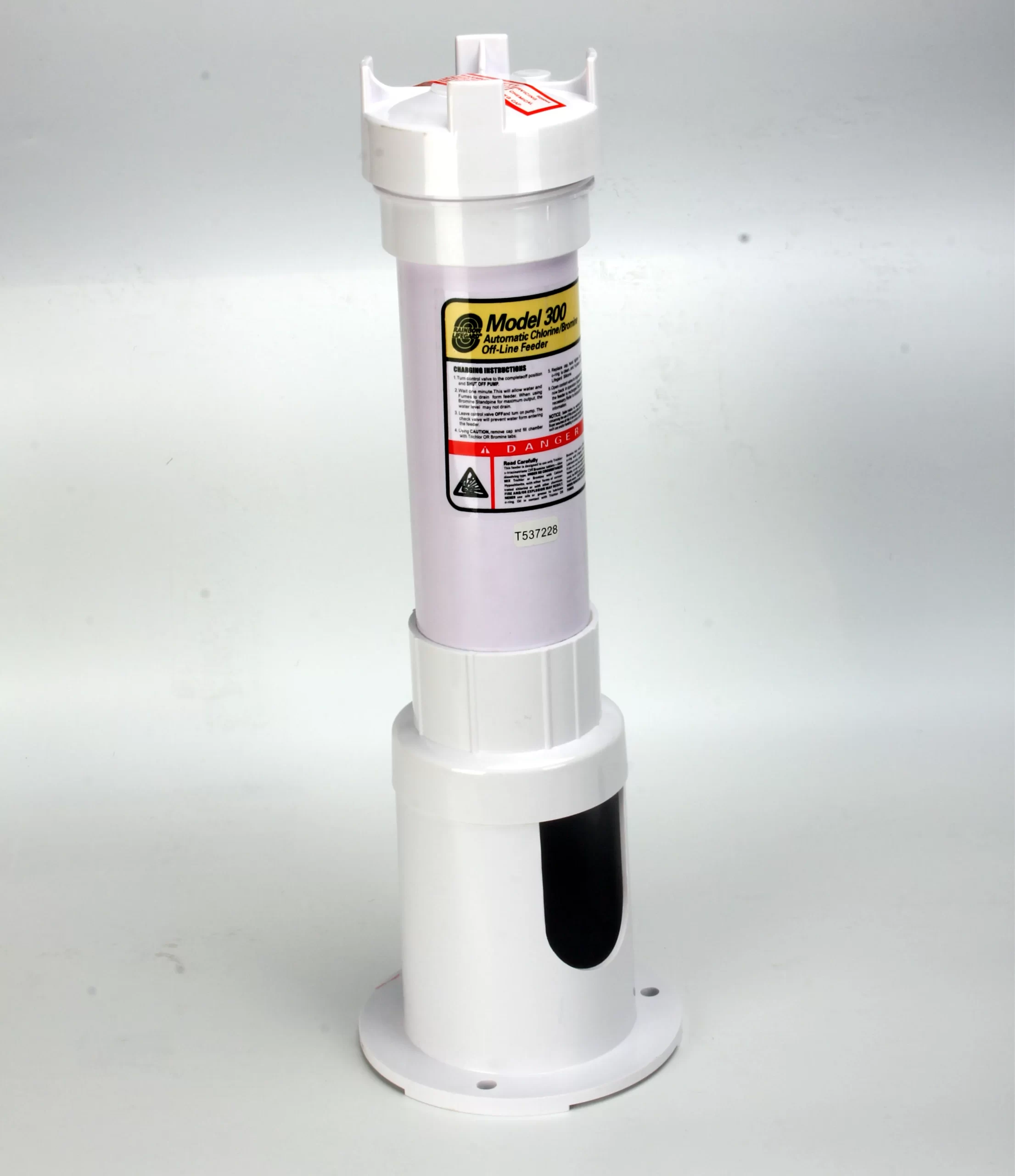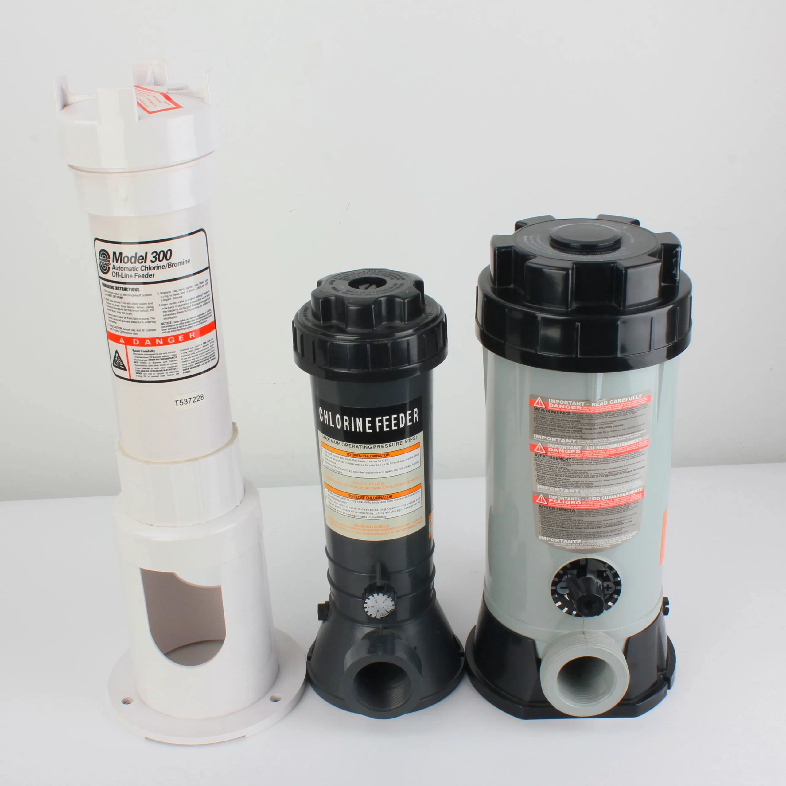 Swimming pool chemical feeders are devices used to precisely control the amount of chlorine, bromine or pH control chemical dispensed into the pool.