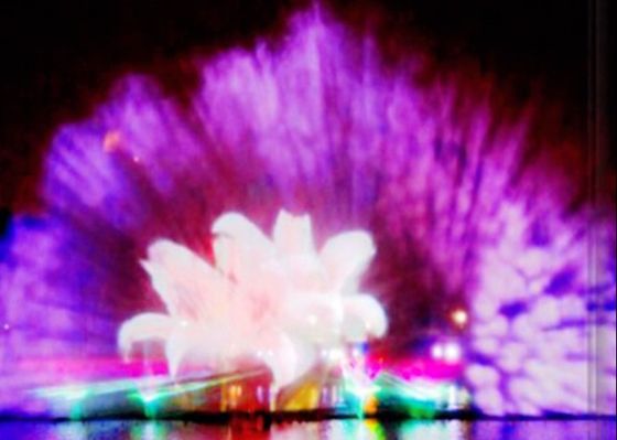 Water performance together with music and movie.