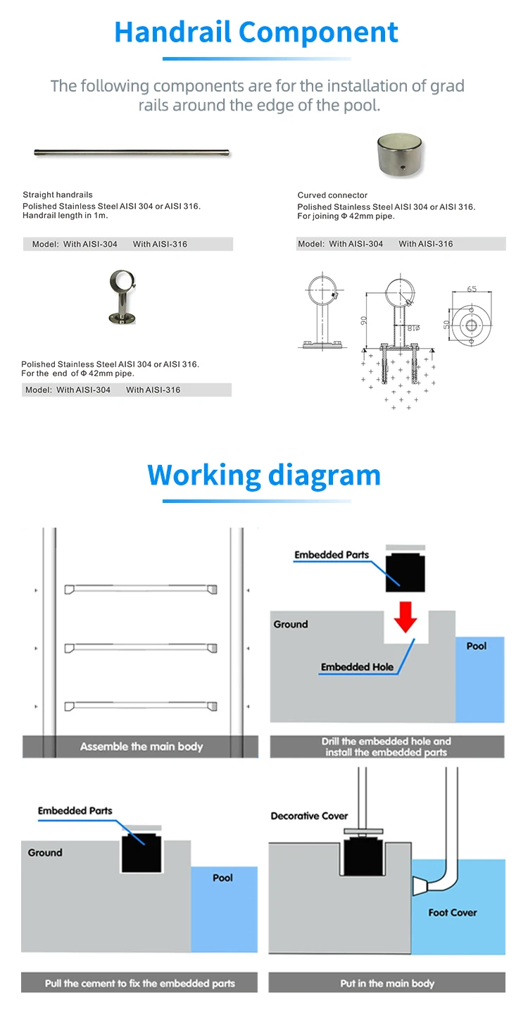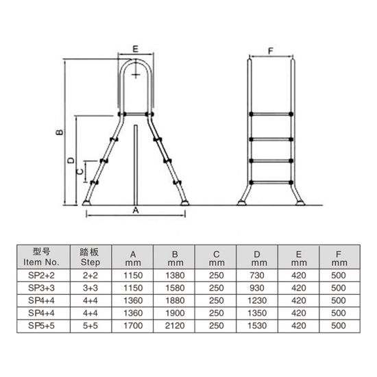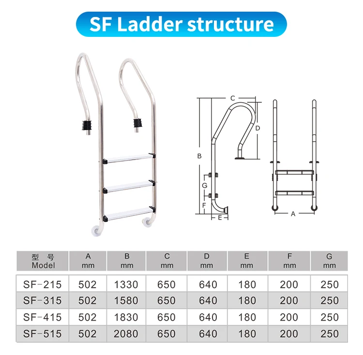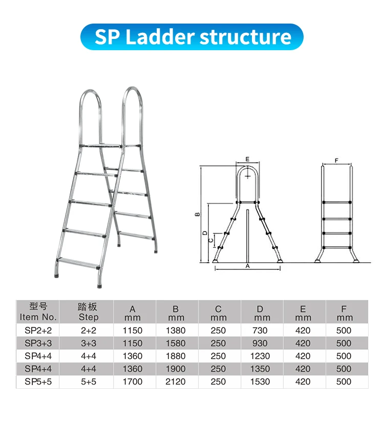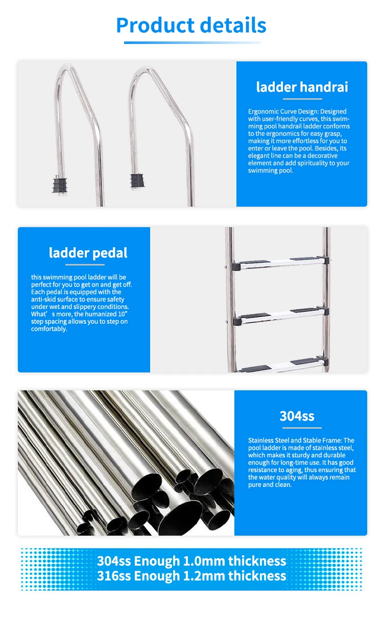 Double Sides Ultra Quality Swimming Pool Accessories Stainless Steel Anti-Slip Safety Pool Ladder