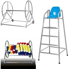 1) Swimming pool float line rollers are made of Stainless Steel 304, provided with a large diameter wheel for line collection, mounted on 2 wheels for moving around.