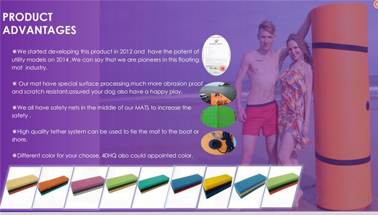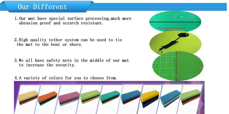 The Floating Lake Mats are perfect for relaxing on the water during the summer time,it is sturdy enough for the adults and kids to run and jump at the heart of the mat. There has even been some big time dancing on floating mats during the summer. Our floating pad can bring you cool and laughter on a hot summer day. You can take it to water parks, swimming pools, lakes, beaches and the sea for water games, parties, sunbathing and relaxation.
