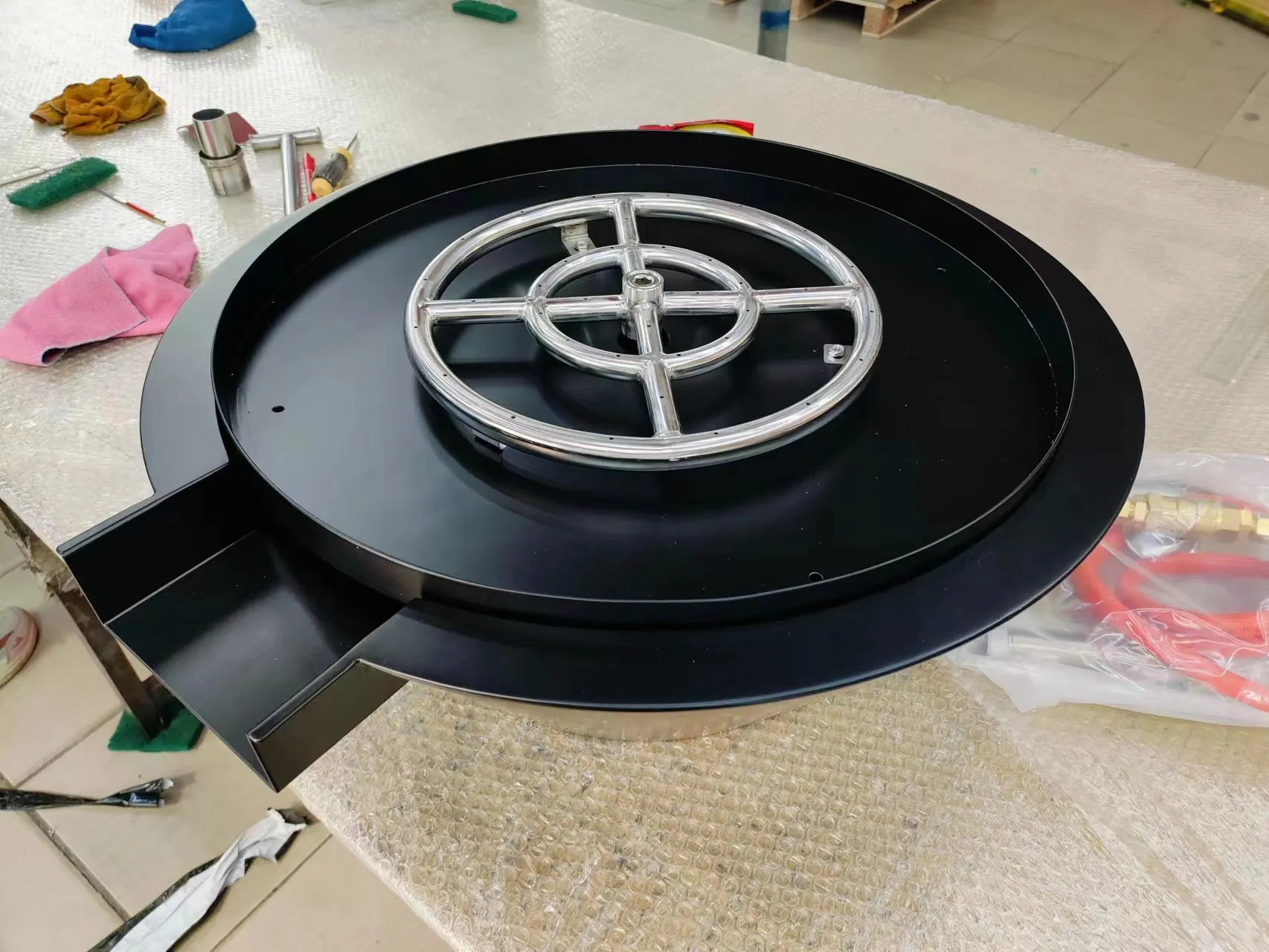 24″ Square Fire with 4 water output combo,Stainless Steel one(#304 grade S/S, 1.2mm thick)12″burner