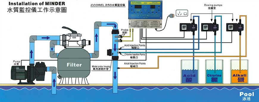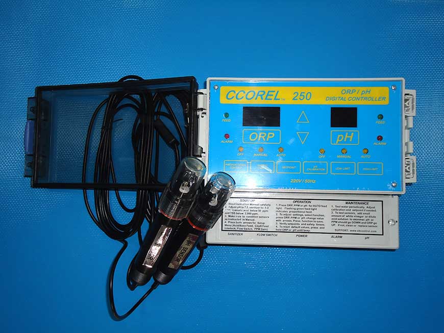 The ORP/PH digital controller automaticallly maintainsboth sanitizer ORP(oxidation-reduction potentail or redox) and water Ph in pools and spas .All operating functions are clearly labeled and accessible from the front panel,with safety and easy -reset features not found on ther controllers.I t could monitor pool water automaticcally.It is water quality monitor .Pool controller ,also called wanter quality monitor, usually use with 3 dosing pumps,available in AC220V 50HZ or 60HZ.