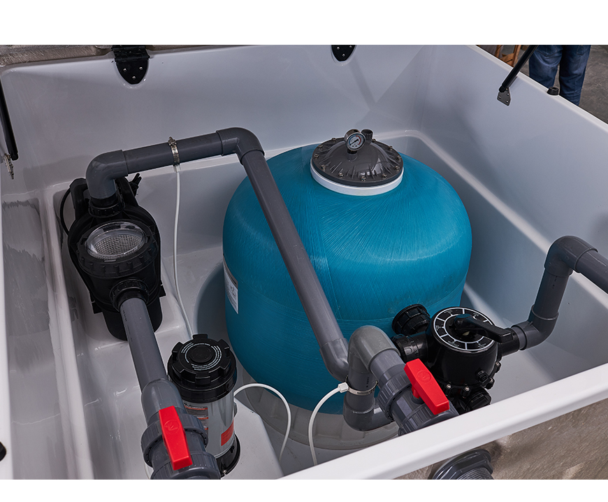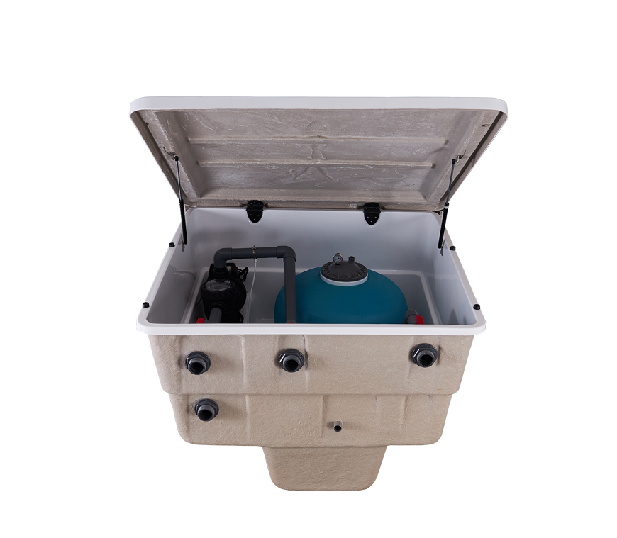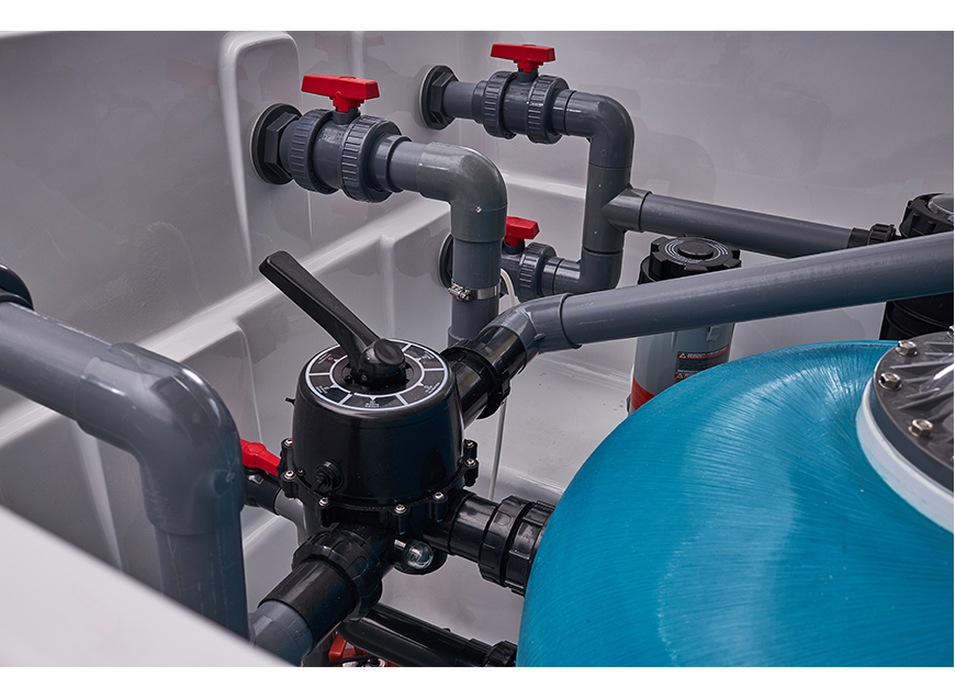 is integrated and pipeless.This pool filter system is convenient for small pool use.This filter will include all the basic equipment in the box,which is equal to a machine room.So if you buy this products,you don’t need build a machine room,which can reduce your construction cost.
