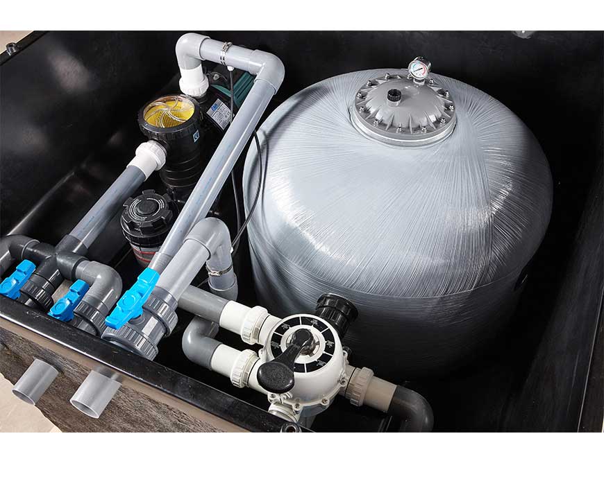 Integrated swimming pool water quartz sand filter enclosure is made of fiberglass and polyvinyl chloride,which is strong and durable. to comply with the traditional sand filtration tank to ensure a thorough filtering and offer sparkling clean pool water.