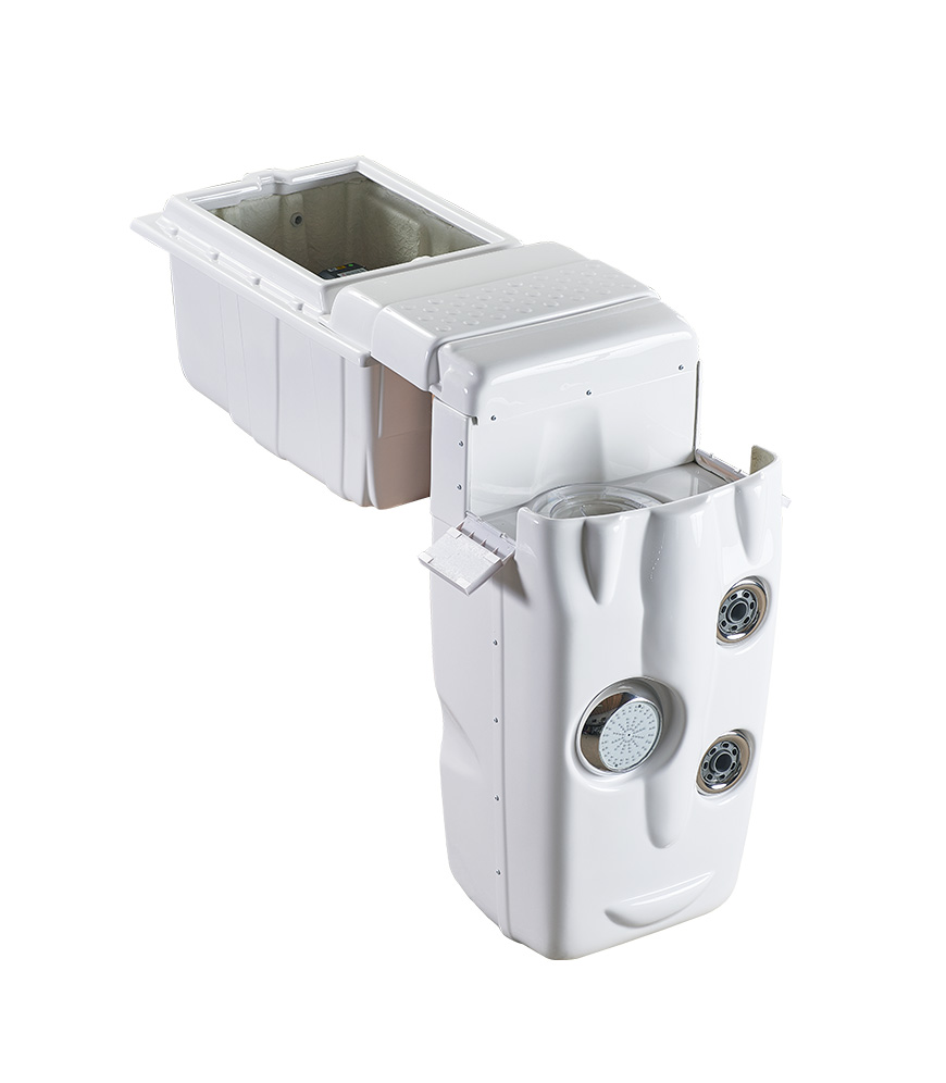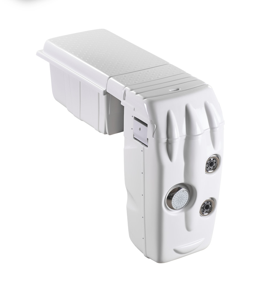 PK8022 New model wall hung piscina swimming pool water filter with two pcs swim jets and one pcs light, It’s a complete piscina water fitration system that include filter, chlorin feeder, pump, time controller, light, ladder..etc. Ozone and heater are optinal. The shell is made of high quality acrylic, advantage is anti-acid, anti-fading, and easy to clean. Easy installation and operation.