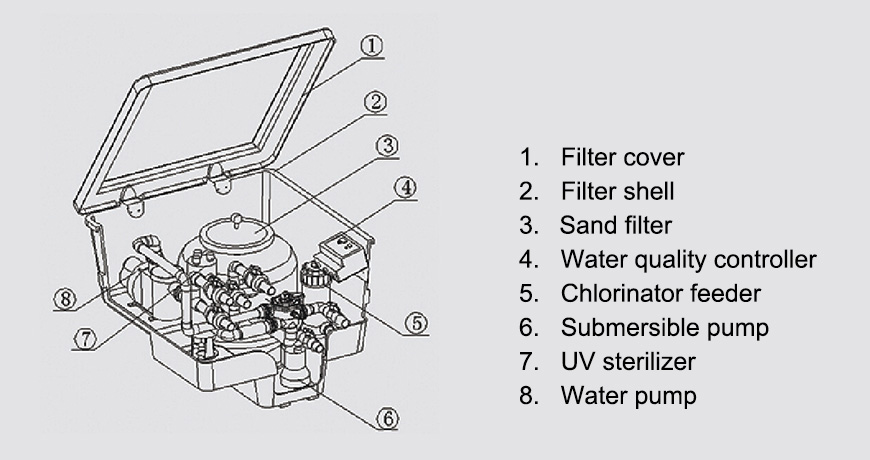 can be fixed at a convenient place (underground) near a swimming pool. It is thenewest swimming pool product in water treatment area.