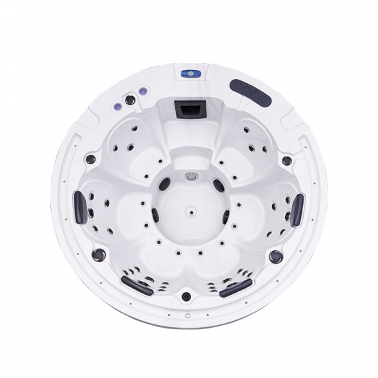 is a classic round spa ideal for commercial or residential users.With the grating groove,the spa can be used for four person,when all people get into the spa at the same time the water will gush out and drained from the grating groove. Welcome to visit joyspa to see more.