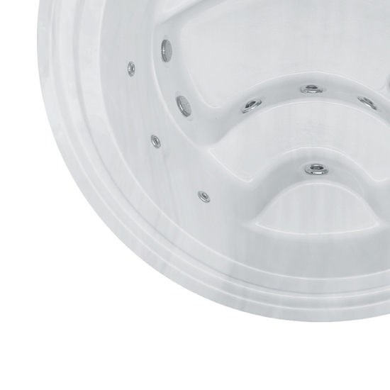 is a classic round spa ideal for commercial or residential users.With the grating groove,the spa can be used for four person,when all people get into the spa at the same time the water will gush out and drained from the grating groove.