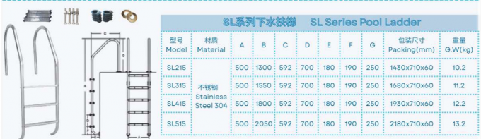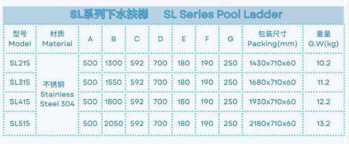 | Product Description Of SL Series Stainless Steel Swimming Pool Ladder | |