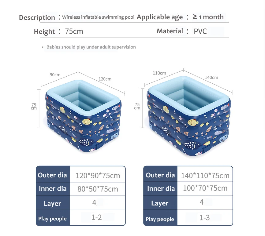 1.2m/1.4m Wireless PVC Inflatable Baby Swimming Pool Ball pit Kids Paddling Pool Kiddie Pool For Backyard