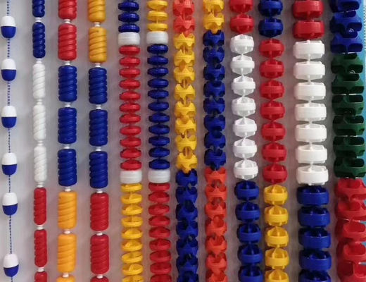 Each Swimming Pool Racing Line Lane consists of a series of φ11cm, φ12cm and φ15 disks and strung on a stainless steel cable. Each of these disks is designed to rotate independently of the others, thereby allowing the wave energy to be absorbed and dispersed alone, the channel in the lane. Competitor swimming pool lane rope come completely assembled.