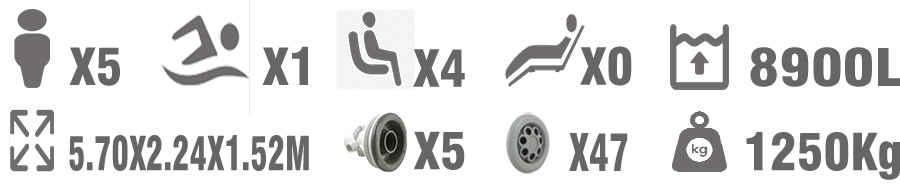 | Size : 5700*2240*1520mm | 1 X Lockable spa thermo cover |