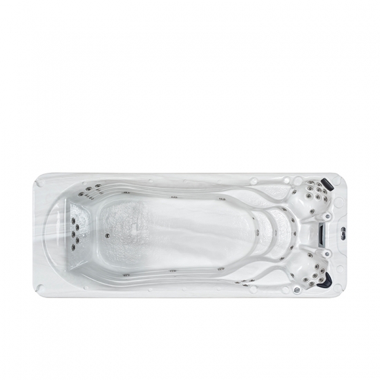 Extreme long swim side with anti-slide floor,powerful swim jets offer water flow for swimming,real deep seat design with different jet arrangement ,neck and shoulder massage jet arrangement,Side steps for easy get in and get out from the middle are the main features of the .