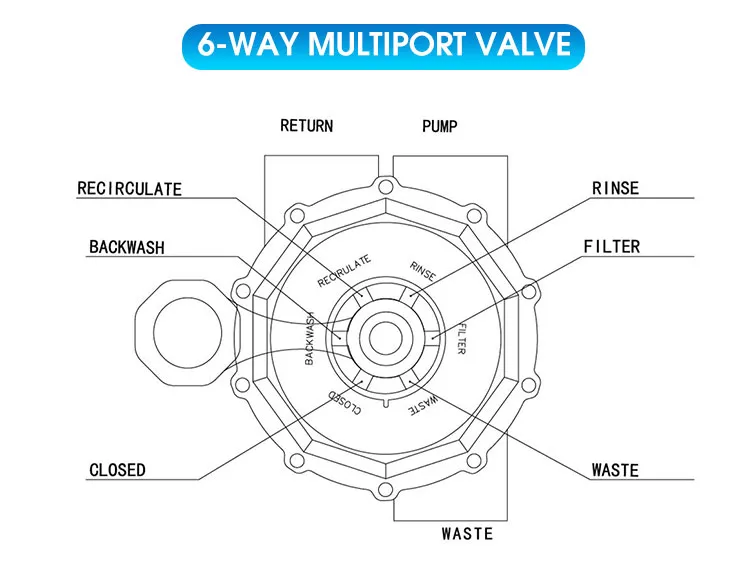 - Easy-to-use water drain plug and multi port valve lets you select any of the valves / filter operation with a simple lever-action