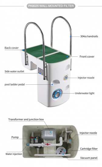 Wall-Hung Filter Pool Fltration Pipeless Filters For Swimming Pool Integrative Filter PK8028